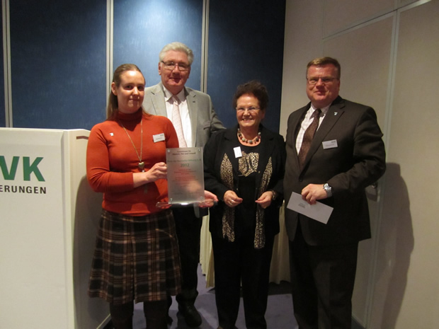 Am 25. November wurde der Hunde-Besuchsdienst für Menschen mit Demenz „Vier Pfoten für Sie“ mit dem Karmetta-Förderpreis 2013 ausgezeichnet. Das Projekt in Trägerschaft der Alexianer Köln GmbH lebt weitgehend von der ehrenamtlichen Arbeit engagierter Hundehalter und Ihrer Vierbeiner. Bei der feierlichen Preisverleihung in der „Residenz am Dom“ waren neben Änne Türke, Leiterin des Projekts, und Peter Scharfe, Regionalgeschäftsführer der Alexianer Köln GmbH, auch viele Hundehalter und ihre Vierbeiner anwesend. Thomas Schröder, Präsident des Deutschen Tierschutzbundes (Karmetta-Preisträger 2012), berichtete über die aktuellen Schwerpunkte in der Tierschutzarbeit und über die Fortschritte bei der Ausbildung von Tierschutzlehrern. Die Übergabe des mit 1.000 Euro dotierten Förderpreises übernahmen der Vorstandsvorsitzende der Karmetta-Stiftung, Bernd Oppermann, und der Vorsitzende des Stiftungskuratoriums, Heinrich Nopper, gemeinsam.