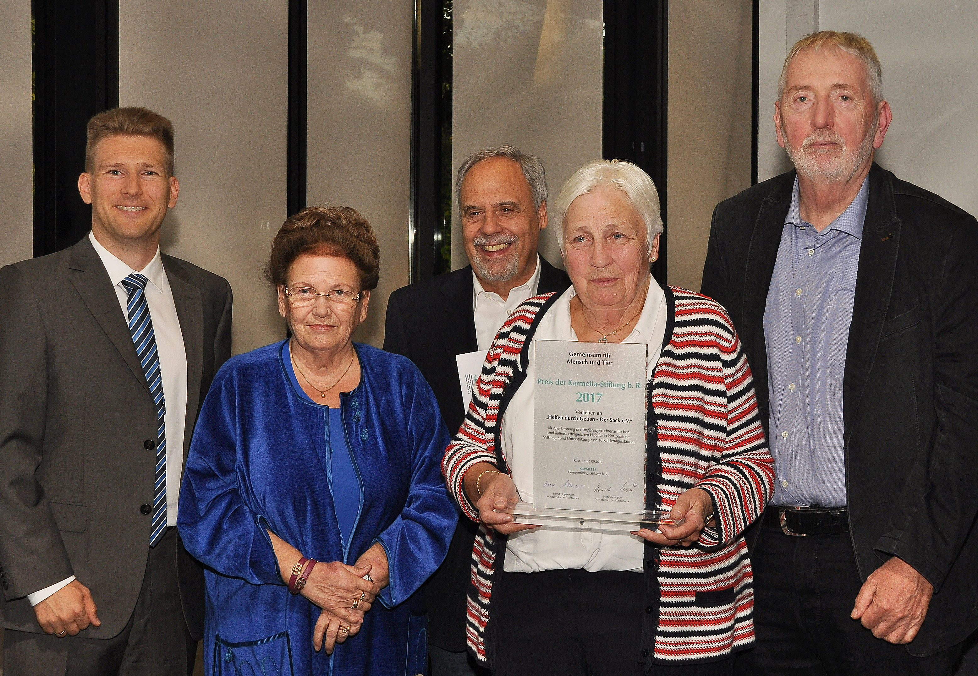 Hunger hat viele Gesichter. Auch in Köln gibt es Menschen, die nicht genug Geld haben, um sich satt zu essen. Der gemeinnützige Verein „Helfen durch Geben – der Sack e. V.“ kümmert sich um solche Menschen und hilft mit Lebensmittelspenden. Dieses langjährige ehrenamtliche Engagement wurde nun von der Karmetta-Stiftung doppelt ausgezeichnet: Neben dem Karmetta-Förderpreis 2017, der die Vereinsarbeit von „Helfen durch Geben – der Sack e. V.“ würdigt, wurde auch der besondere ehrenamtliche Einsatz des Ehepaares Bolender geehrt. Das Ehepaar, das sich seit 18 Jahren unermüdlich bei „Helfen durch Geben – der Sack e. V.“ engagiert, erhielt den in diesem Jahr erstmals verliehenen Ehrenamtspreis der Karmetta-Stiftung. Dr. Sebastian Haas und Helga Oppermann von der Karmetta-Stiftung überreichten vor rund 70 geladenen Gästen die Auszeichnungen. Elfi Scho-Antwerpes, Bundestagsabgeordnete und stellvertretende Oberbürgermeisterin von Köln, brachte in Ihrem Grußwort den Grund für die Ehrung auf den Punkt: „Wir sind heute hier um Menschen zu würdigen, die Gutes tun“. Trotz eines vollen Wahlkampfkalenders hatte es sich die SPD-Politikerin und langjährige Unterstützerin des Vereins nicht nehmen lassen, an der Preisverleihung teilzunehmen.