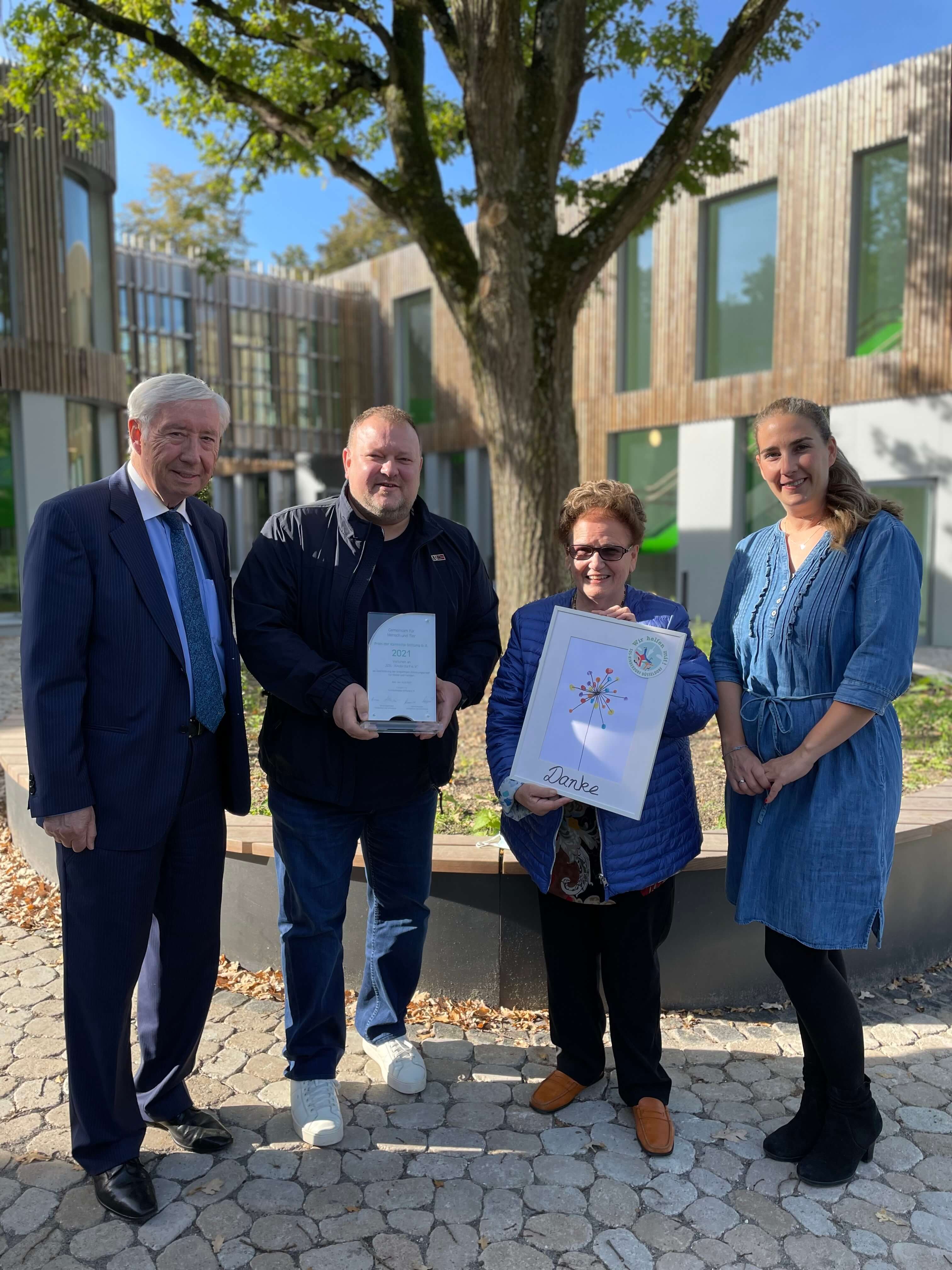 v.l.n.r.: H. Nopper (Vorsitzender des Kuratoriums der Karmetta-Stiftung), H. Stauber (Einrichtungsleiter des SOS-Kinderdorfs Düsseldorf), H. Oppermann (stellv. Vorsitzende des Kuratoriums der Karmetta-Stiftung), A. Allerdissen (Mitglied des Kuratoriums der Karmetta-Stiftung)