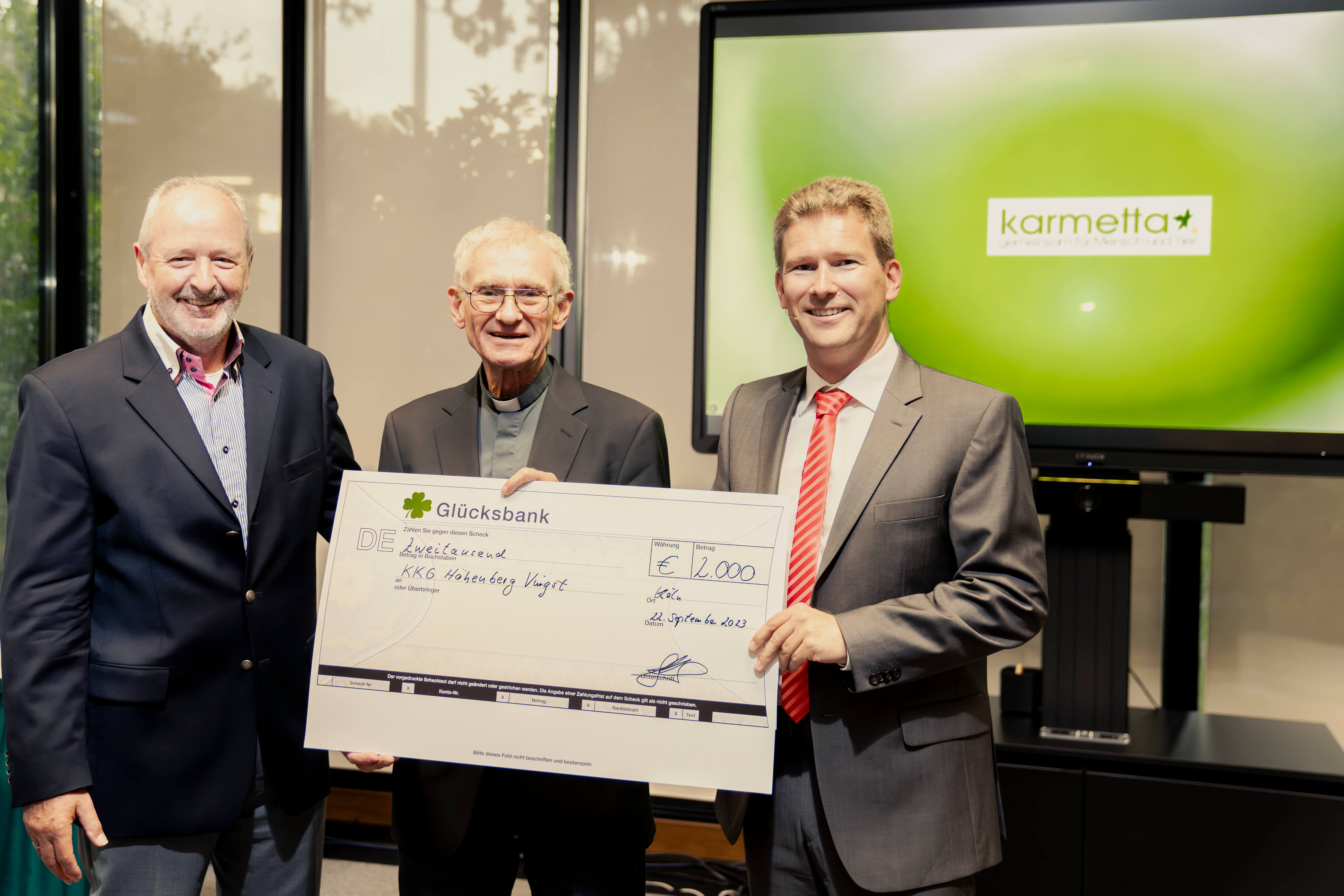 v.l.n.r.: Dr. S.Haas (stellvertretender Vorsitzender der Karmetta-Stiftung), M.Loof-Duda (Vorsitzende des Vereins Leben für Tiere e.V.), H.Nopper (Vorsitzender des Kuratoriums der Karmetta-Stiftung)